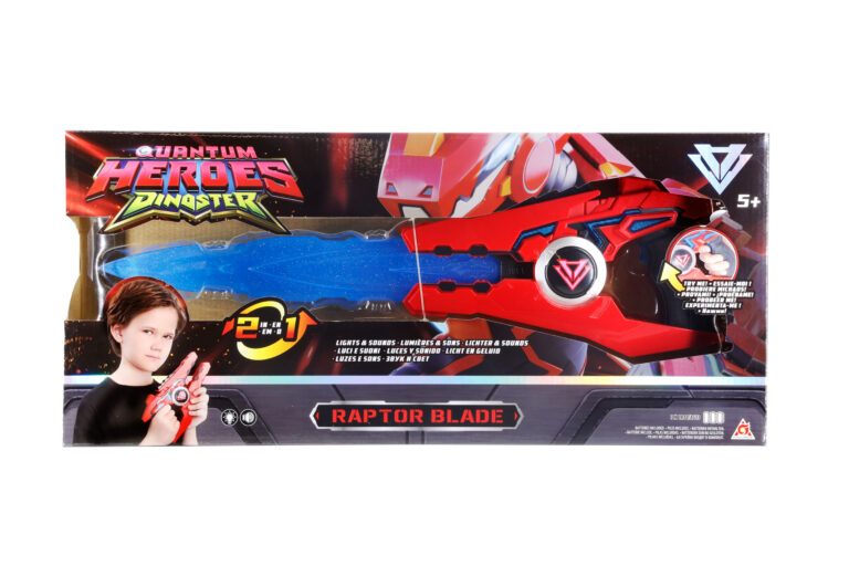 Pripremi se za epske borbe s Raptor mačem 2-u-1 – Quantum Heroes, moćnim oružjem inspiriranim popularnom serijom Dinoster. Ova višenamjenska igračka omogućuje ti da jednim pritiskom gumba transformiraš borbeni mač u snažnu pušku.