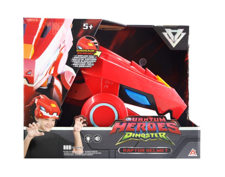 Uz Dinoster Raptor kacigu – Quantum Heroes, zakorači u svijet dinosaura i robota te preuzmi ulogu hrabrog Lucia! Ova kaciga omogućuje ti da doživiš pravu akciju uz efekte dinosaurove rike i trepćuća svjetla.
