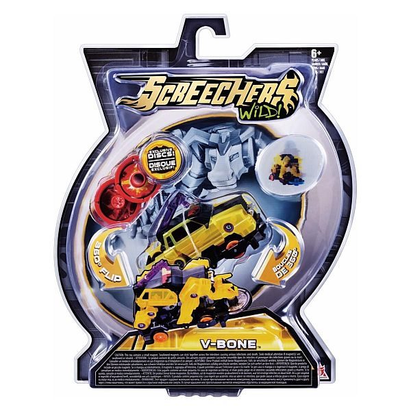 7,90 KMU Screechers Wild svijetu zvijeri koje hodaju i govore sjedaju iza volana Screechersa – hibridnog trkaćeg automobila. Screechersi jure, skaču i u skoku se transformiraju. Set s vozilom i dva posebna diska kojima se aktivira transformacija.