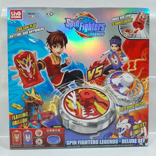 Svaki ovaj set dolazi sa jednim pištoljem i jednim zvrkom. Iz crtanog serijala Spin Fighters, ovo je samo za odvažne i hrabre!
