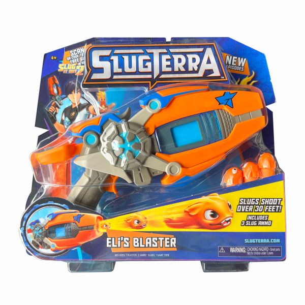 Svako pakovanje sadrži 1 Eli's Blaster, 5 Slug strelica i remen za streljivo. Originalne licencirane igračke po crtanom serijalu Slugterra.