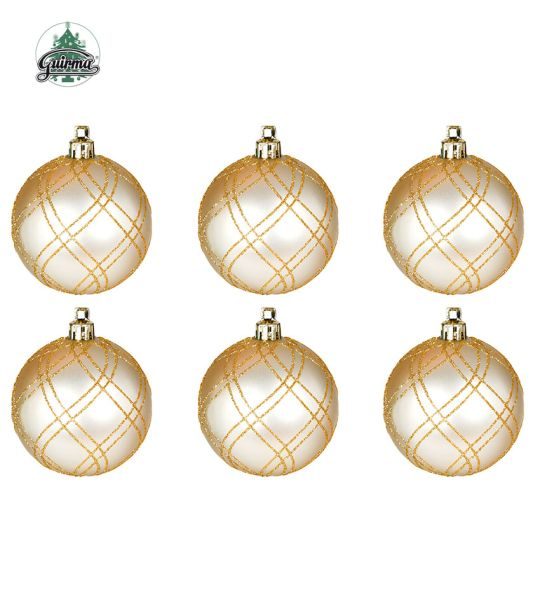 6 božićnih kuglica (zlatna s linijama) – 6 cm
