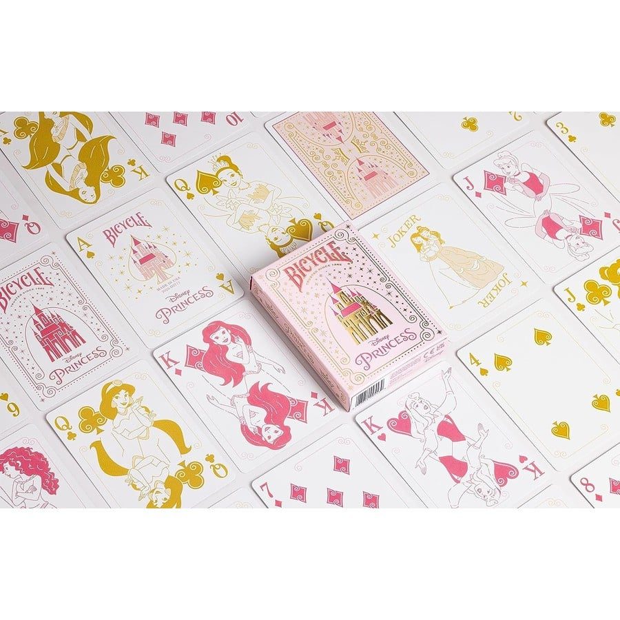 Karte za igranje Bicycle Disney Princess prikazuju kultni Disneyjev dvorac na prednjoj strani, sa zlatnim i holografskim folijskim detaljima na kutiji. Prednja strana karata prikazuje dvorske karte s umjetničkim djelima 12 različitih Disneyjevih princeza.