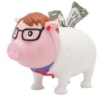 Kasica prasica, rađeno po evropskim standardima od kvalitetne plastike, tako da se neće razbiti ako vam ispadne. Otvara se tako što se glava okrene. Prekrasni detalji čine da se kasica doima kao jako lijep, pristojan i originalan poklon. LILALU produkcija
