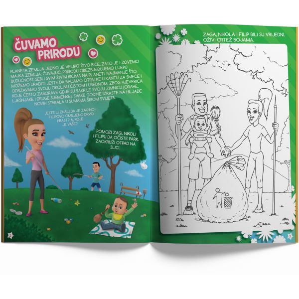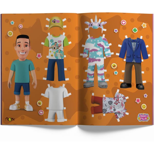 Sa zanimljivim informacijama, zadacima i mnoštvom naljepnica, njihova treća bojanka sadrži i njihovu igru “Obuci Zagu i Filipa!” tako što se odjeća iskruži i možete je onda “isprobavati” na Zagi i Filipu i obući ih po vašoj volji i mašti.