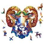 Drvena slagalica s motivom Ovna. Upečatljiva i šarena slagalica koja se sastoji od 125 dijelova u obliku Ovna.