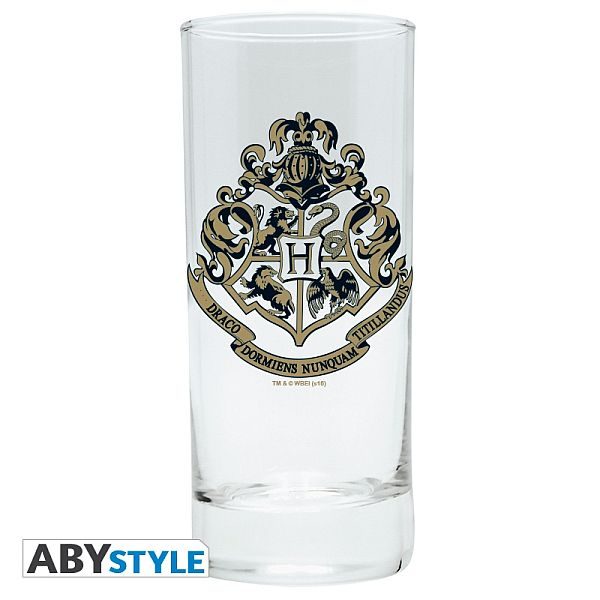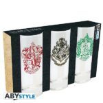 3 staklene kvalitetne čaše po 0,29 l, visine 14cm i prečnika 6cm. Licencirani artikal. Za sve ljubitelje Hogwartsa, Gryffindora i Slytherina.