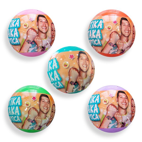 Cijena se odnosi na jednu lopticu u 5 mogućih boja. Svaka loptica sadrži: 2 naljepnice sa porukama, 1 sat, 1 gumenu voćkicu, 2 naljepnice za mobitel i 1 tetovažu. Mi ne možemo garantovati tačno koji elementi će vam doći u loptici.