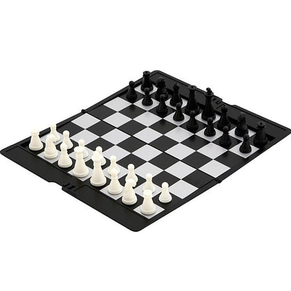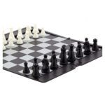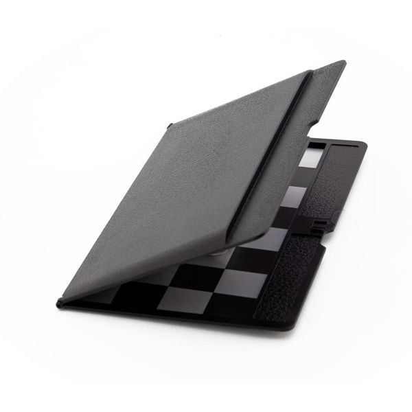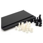 Sklopivi i jako tanki lijepi šah, crn je izvana, a crno-bijel iznutra. Sadrži i sve potrebne figure. Dimenzije 200×170 mm.