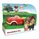 Kompatibilan sa svim playsetovima. Ovaj set sadrži originalno Monchhichi auto u koje mogu stati četiri Monchhichi figurice! Također dolazi i Willow figura. Mogu se pomjerati sve ruke, noge i glava, ovkirne dimenzije figure su 7,5cm i auta 18 cm.