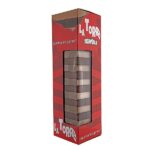 Drvena igra za sve uzraste, dimenzije 75x75x28 mm. Dolazi i kocka koja bira sa kojom nijansom drveta treba igrati. Odlična prezentacija i drvena izrada dijelova. Cilj je zadnji pomaknuti dio iz sredine tornja i staviti na vrh bez rušenja tornja.