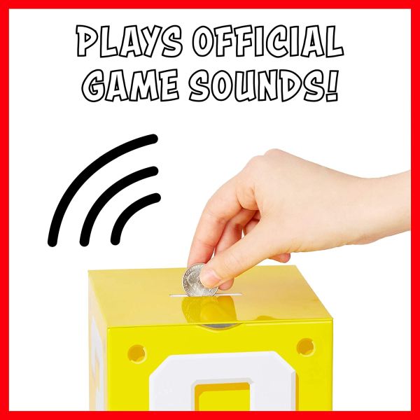 Ova licencirana kasica od metala pušta originalni zvuk iz Video Igre Super Mario kada se ubaci novčić. Zahtijeva baterije koje nisu uključene. Dimenzije oko 10 cm.