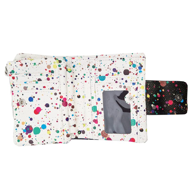 “Novčanik izrađen od ugodnog i otpornog materijala jedinstvenog dizajna. 3 gumb zatvarača, patentni zatvarač za kovanice, dodatni patentni zatvarač. Zaseban dio za kartice i osobne dokumente. Materijal: poliuretan