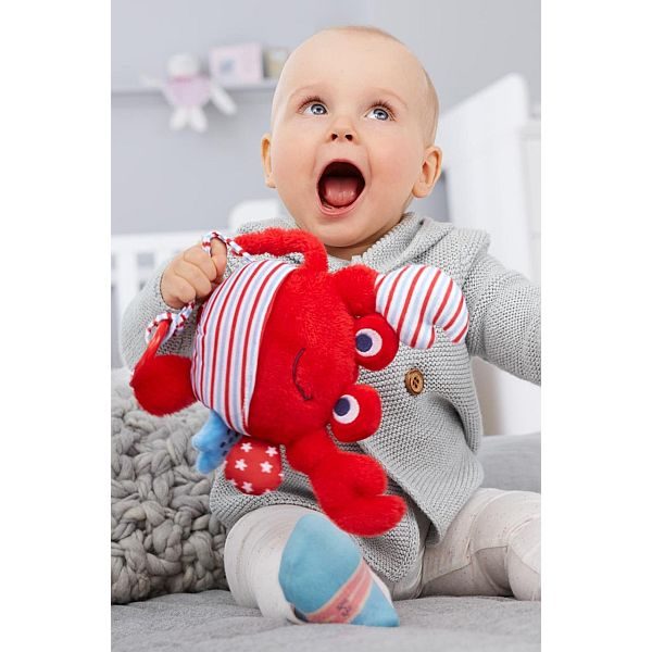 19,90 KMLijep pliš za male bebe, sa nekoliko površina za dodir, od zvečkave ruke, prstena sa trakom, šuškavom zvijezdom. Poliester materijal, dimenzije 21,5x20x9 cm.