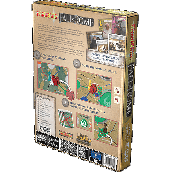 Dob: 8+, Igrača: 1-5, Partija: 45-60 minuta. Igrači pokušavaju zajedno spasiti Rim, najveće carstvo ikad, od propasti tako što brane teritoriju od raznih hordi i bandi, te stvaraju alijanse i priključuju nove legionare sebi.
