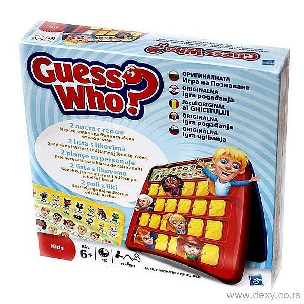 Za uzrast: 6+, Broj igrača: 2, Prosječna partija 15 min. Društvena igra u kojoj svaki igrač odabere jednu ličnost i pokušava pogoditi ličnost koju je drugi igrač odabrao tako što postavlja pitanja i sebi skida kandidate eliminacijom.
