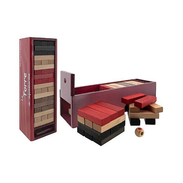Dimenzije kutije 31x10x8 cm. Dimenzije svakog pojedinačnog dijela 7,5×2,5×1,4 cm. Predivna drvena kutija, koja ima i mali prostor za kocku koja određuje koji se dio izvlači u toku igre. Prekrasan poklon i igra za cijelu porodicu.