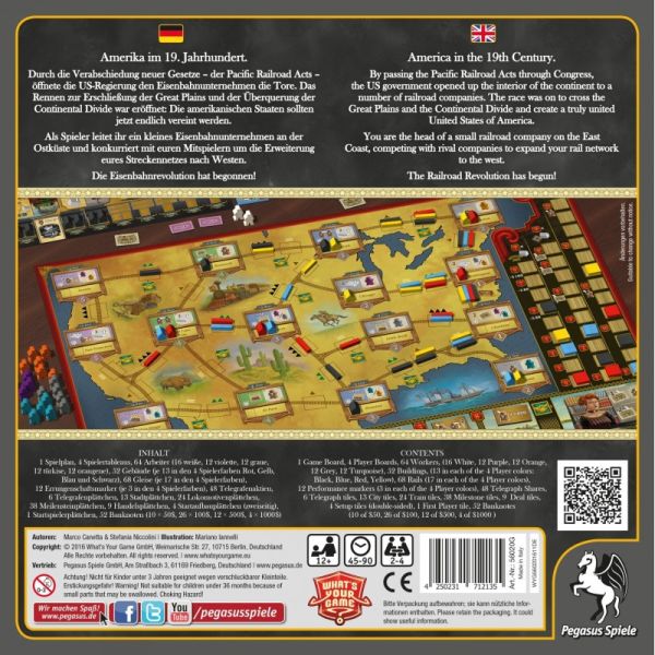 Dob: 12+, Igrača: 2-4, Partija: 45-90 min. Smješteni ste u Ameriku 19.stoljeća gdje se firme bore za prevlast željezničke pruge da bi se prljavo obogatili i postali najveći tajkuni svog doba!