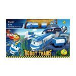 Bazirano po popularnom crtanom serijalu Robot Trains (Robo Vlakovi), originalne licencirane igračke. Ovaj set sadrži stanicu sa tračnicama i vozićem sa vagonima. Veličina kutije: 505x305x140 mm. Zahtijeva 2 AAA baterije, 1,5V (ne sadrži ih unutra).