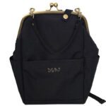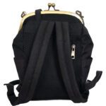 Ovaj ruksak je moderan i praktičan dodatak, idealan za svakodnevnu upotrebu. Izrađen je od izdržljivog materijala u crnoj boji, s prepoznatljivim metalnim okvirom i kopčom na vrhu, inspiriranom retro torbicama.