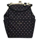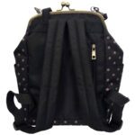 Ovaj ruksak je moderan i praktičan dodatak, idealan za svakodnevnu upotrebu. Izrađen je od izdržljivog materijala u crnoj boji sa zlatnim točicama, s prepoznatljivim metalnim okvirom i kopčom na vrhu, inspiriranom retro torbicama.