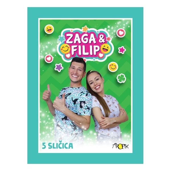 Originalne sličice Zaga i Filip, cijena se odnosi na jednu kesicu u kojoj dolazi po 5 sličica. Tačan sadržaj pakovanja ne možemo garantovati. Svi koji sakupe sve sličice i popune album i poster u albumu, osvajaju ekskluzivni notes “Zaga & Filip”.