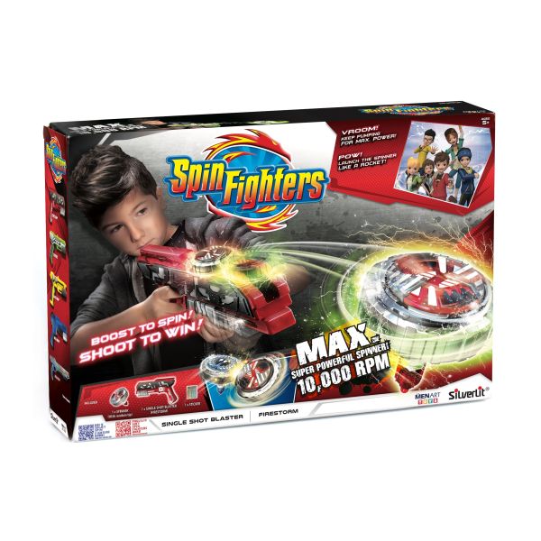 Svaki ovaj set dolazi sa jednim pištoljem i jednim zvrkom. Iz crtanog serijala Spin Fighters, ovo je samo za odvažne i hrabre!