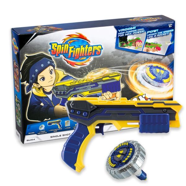 Svaki ovaj set dolazi sa jednim pištoljem i jednim zvrkom. Iz crtanog serijala Spin Fighters, ovo je samo za odvažne i hrabre!