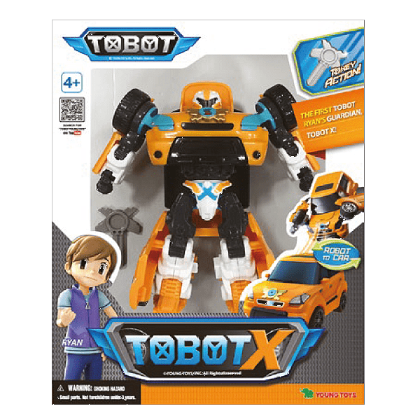 Pomognite Tobotima spasiti grad – uz pomoć ključa za transformaciju igračke Toboti se pretvaraju iz automobila u robote (i obrnuto). Igračke se razlikuju po veličini i broju auta u koje se mogu pretvarati.