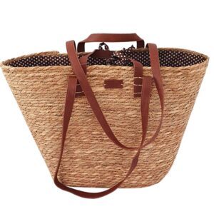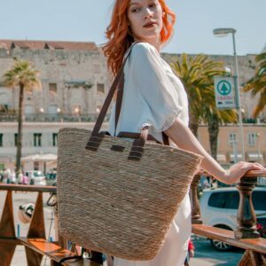 Torba izrađena od pamučnog, poliesterskog i jutenog materijala sa podstavom i unutarnjim džepom! Dim. 56 (širina)x31 (visina) x25 cm (dubina). Gumb zatvarač. Kraća ručka visine 19 cm, dulja ručka prilagodljive visine do 58 cm.