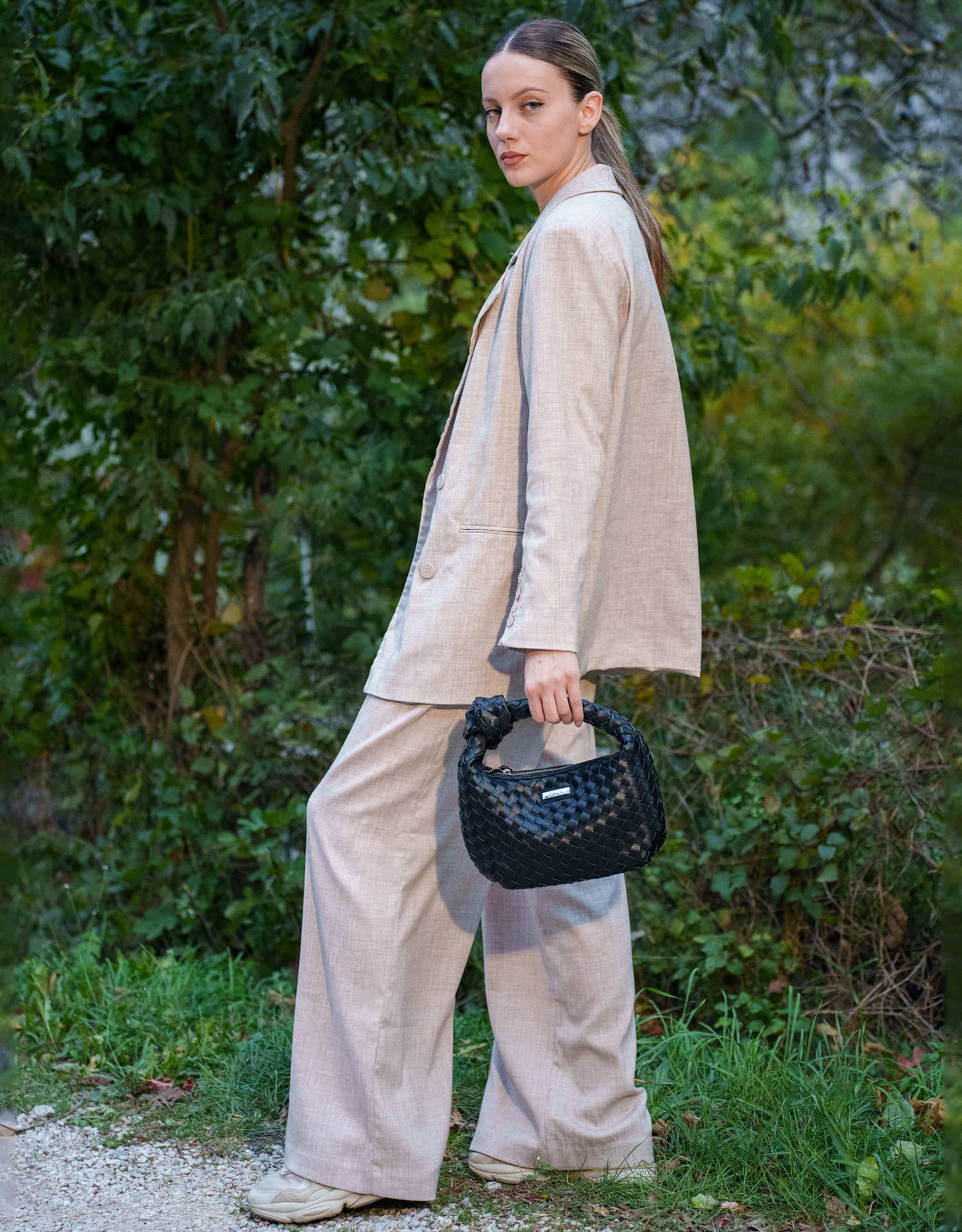 “Torba zanimljivog oblika i teksture izrađena od podatnog i izdržljivog materijala.Uz svaku garderobu, za opušten styling!
