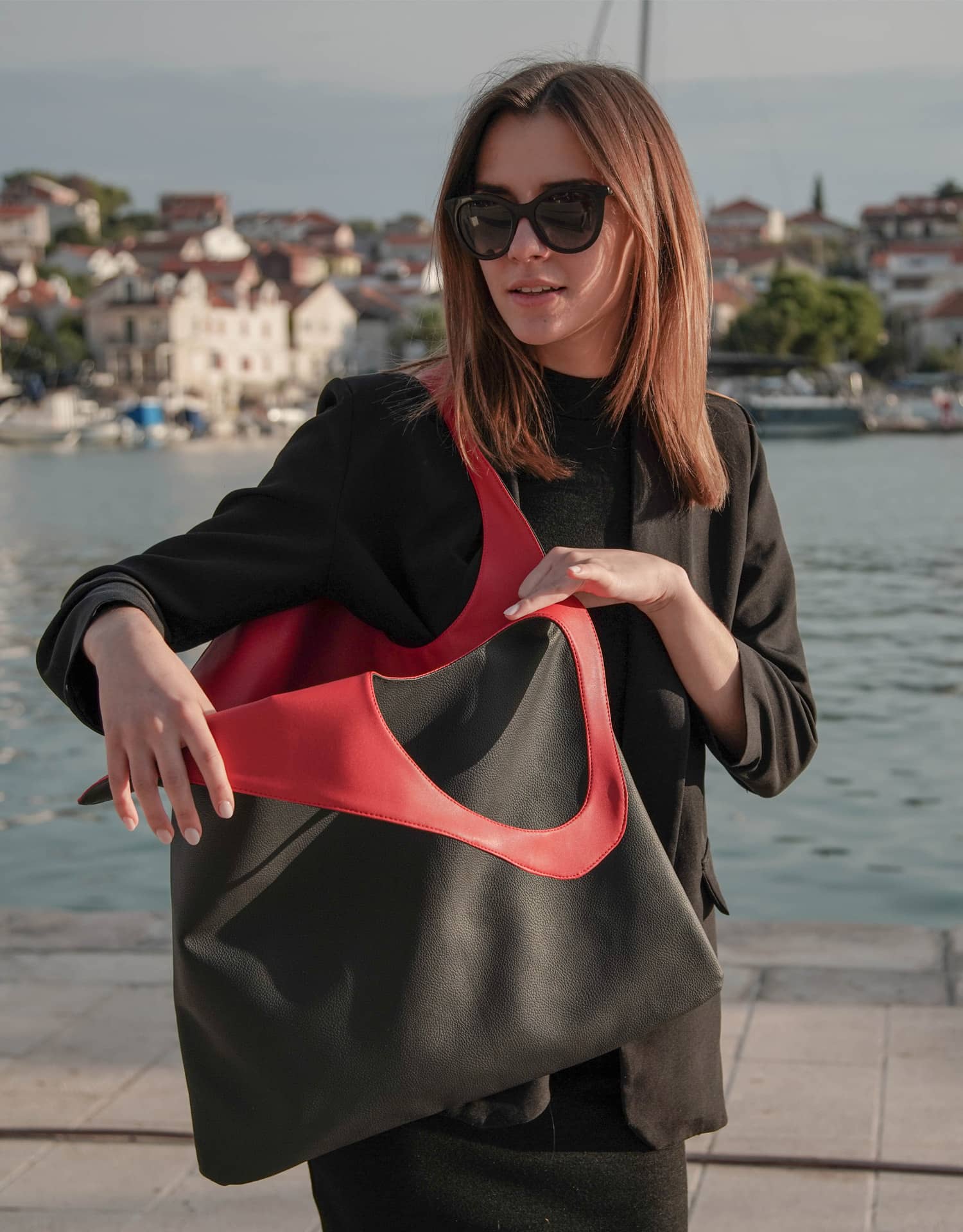TORBA ROMB CRNA SA CRVENOM UNUTRAŠNJOSTI dim. 45cm x 59/44 cm